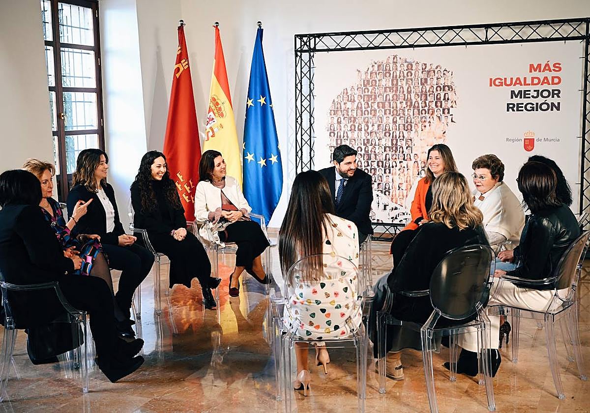 El jefe del Ejecutivo autonómico pudo conocer algunas de las realidades e inquietudes que comparten estas mujeres y resaltó que «solo caminando juntos y con el compromiso de la toda la sociedad y del Gobierno de la Región de Murcia alcanzaremos este objetivo colectivo».