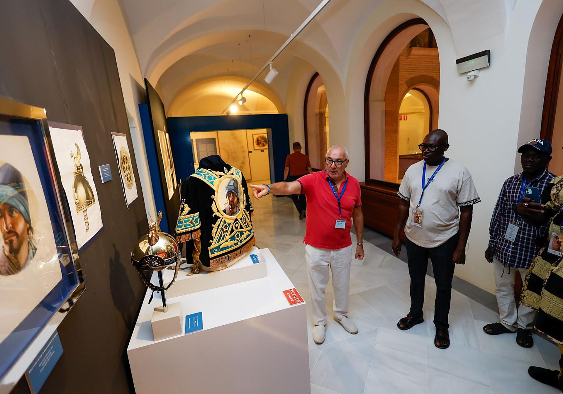 Una selección de esa extraordinaria producción, que ha marcado la identidad de la cofradía durante 120 años, forma parte de la exposición 'Felices, un siglo de bordado en el Paso Blanco', compuesta por 46 piezas. La más antigua, que se exhibe por primera vez al público, es un traje de niño guerrero del grupo de Antíoco, diseñado por Antonio Felices López, que desfiló en el cortejo del Viernes Santo de 1891. Algunos de los bordados se muestran con las fotografías de los personajes que los lucieron en procesión, realizadas por José Rodrigo y Pedro Menchón.