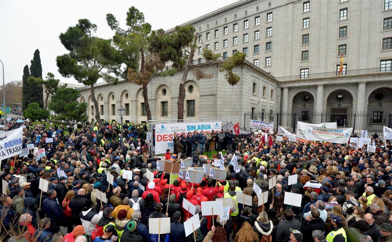 Los regantes exigen a Ribera que rectifique o dimita, en la protesta de Madrid respaldada por el tejido socioeconómico de las tres provincias y de casi todos los partidos, incluido el PSOE
