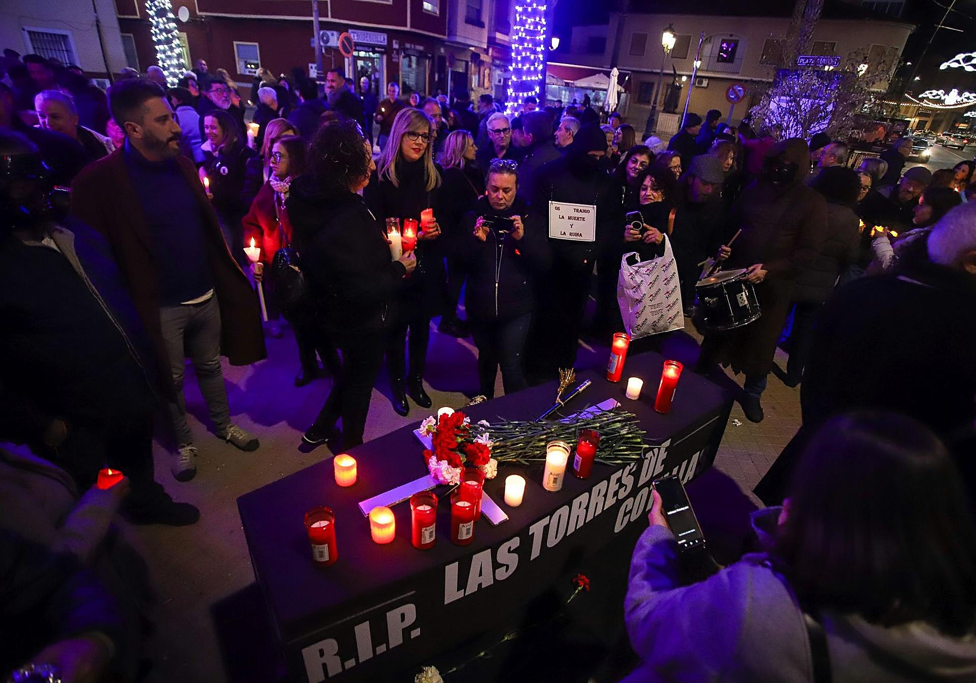 Por su parte, en Las Torres de Cotillas se desarrolló por la tarde otra concentración, aprobada por la Delegación del Gobierno, que también reunió a muchos vecinos en la Plaza Mayor. Un nuevo acto de denuncia que dio a comienzo a las 19 horas, frente al antiguo ayuntamiento, desarrollándose después una marcha hasta la iglesia de Nuestra Señora de la Salceda, donde se llevó a cabo una especie de performance en forma de entierro-velatorio del pueblo en el caso de que se permita la construcción de la planta de biogás. Para ello, los participantes portaban velas.