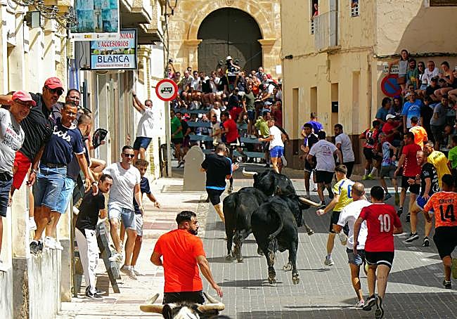 El sofocante calor protagonizó este martes en Blanca el último encierro de la feria taurina, que registró la mayor afluencia de público con respecto a los tres anteriores. Fue un récord de asistencia, con unas 7.000 personas que abarrotaron la Gran Vía, calle Nueva y Plaza de la Iglesia, además de balcones y terrazas.
