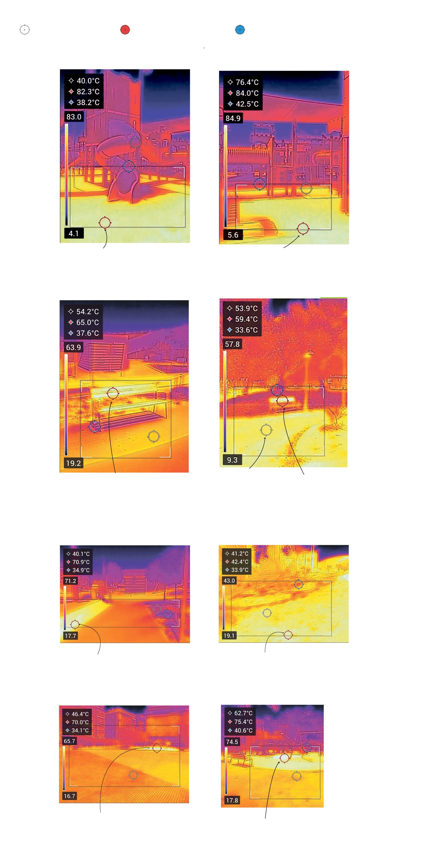 Los resultados pueden extrapolarse a otras áreas de juego de la Región de características similares, como muestra su cercanía con los obtenidos hace un año en otro recorrido que tuvo Murcia como escenario. En aquella ocasión, MurciaLab analizó la situación en varias plazas y llegó a registrar 70 grados en los juegos infantiles de la plaza de Europa, en pleno centro de la ciudad. «Cuando lo vimos nos impactó mucho», asegura la arquitecta técnica y miembro de la asociación Inmaculada Túnez, que urge a las administraciones a tomar medidas para renaturalizar el espacio público: «No basta con poner toldos, que están muy bien y son un paso adelante, hay que hacer otras muchas cosas para que un parque sea utilizable en Murcia en agosto». Los árboles pueden ser un comienzo, ya que ofrecieron reducciones de temperatura de hasta 20 grados en las mediciones.