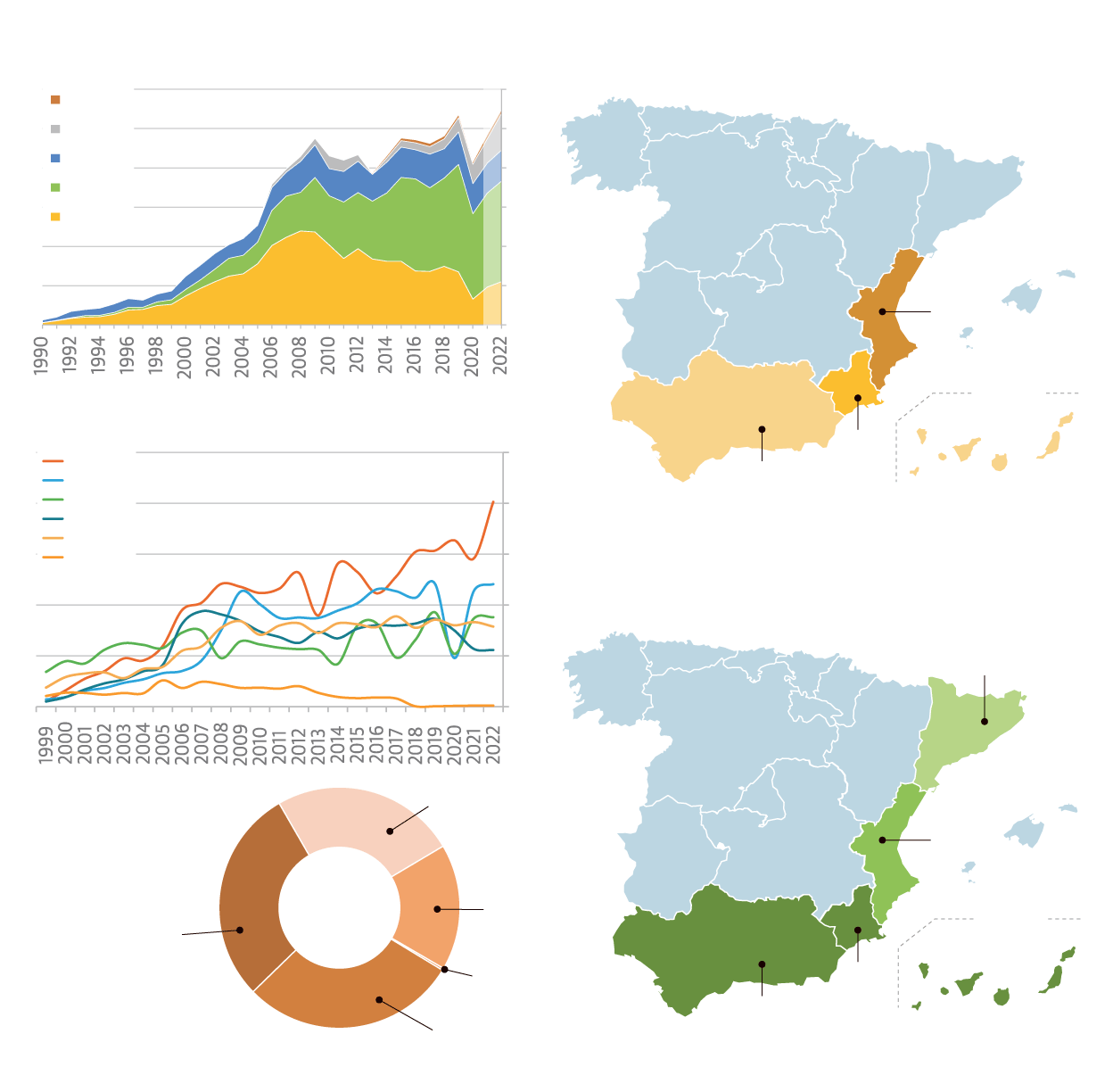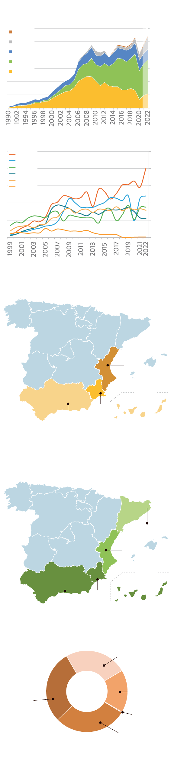 En cualquier caso, debido a que los requerimientos medioambientales y biológicos son muy parecidos para ambas especies, así como son muy similares sus formas de producción, en numerosas ocasiones se cultivan en las mismas granjas y son reemplazables entre sí. Incluso «a nivel de mercado la situación de la dorada afecta a la de la lubina, y viceversa», resaltan desde Apromar. De esa manera, la producción acuícola total de dorada más lubina en España en 2021 fue de 33.556 toneladas, un 18,6% más que el año anterior. Y, en concreto, la producción mayor tuvo lugar en la Región de Murcia (29%), frente a Comunidad Valenciana (28,9%), Andalucía (25%) y Canarias (17%).