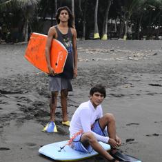El mae con la mano izquierda sujeta la tabla de surf. La derecha alzada y con la palma abierta apunta al cielo. Como su cabeza. A continuación se santigua y se introduce en el agua. Sí, playa Hermosa, con su arena negra, palmeras y sus despreocupados coge olas, en la costa del Pacífico, es distendida y relajada, pero también es devota, igual que el resto de Costa Rica.