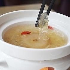 Sopa de nido de golondrina con pera dulce y bayas de goji.