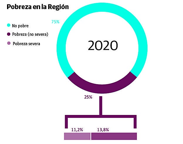 Asimismo, casi un tercio de la población de la Región, exactamente el 29,7%, está en riesgo de pobreza y exclusión social, más allá de la mejora experimentada en los últimos tiempos y de que en 2020 se constató una evolución positiva al respecto, pese al lastre de la crisis de la Covid.