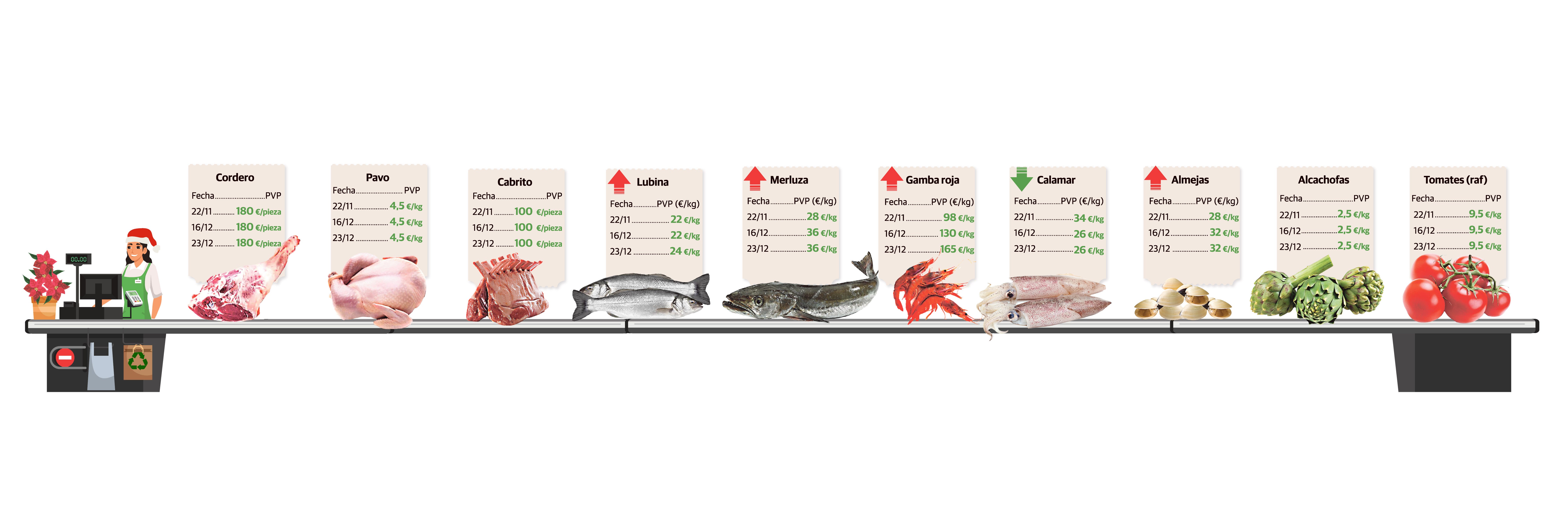 Los precios de la cesta de la compra navideña se mantienen, excepto los del marisco fresco