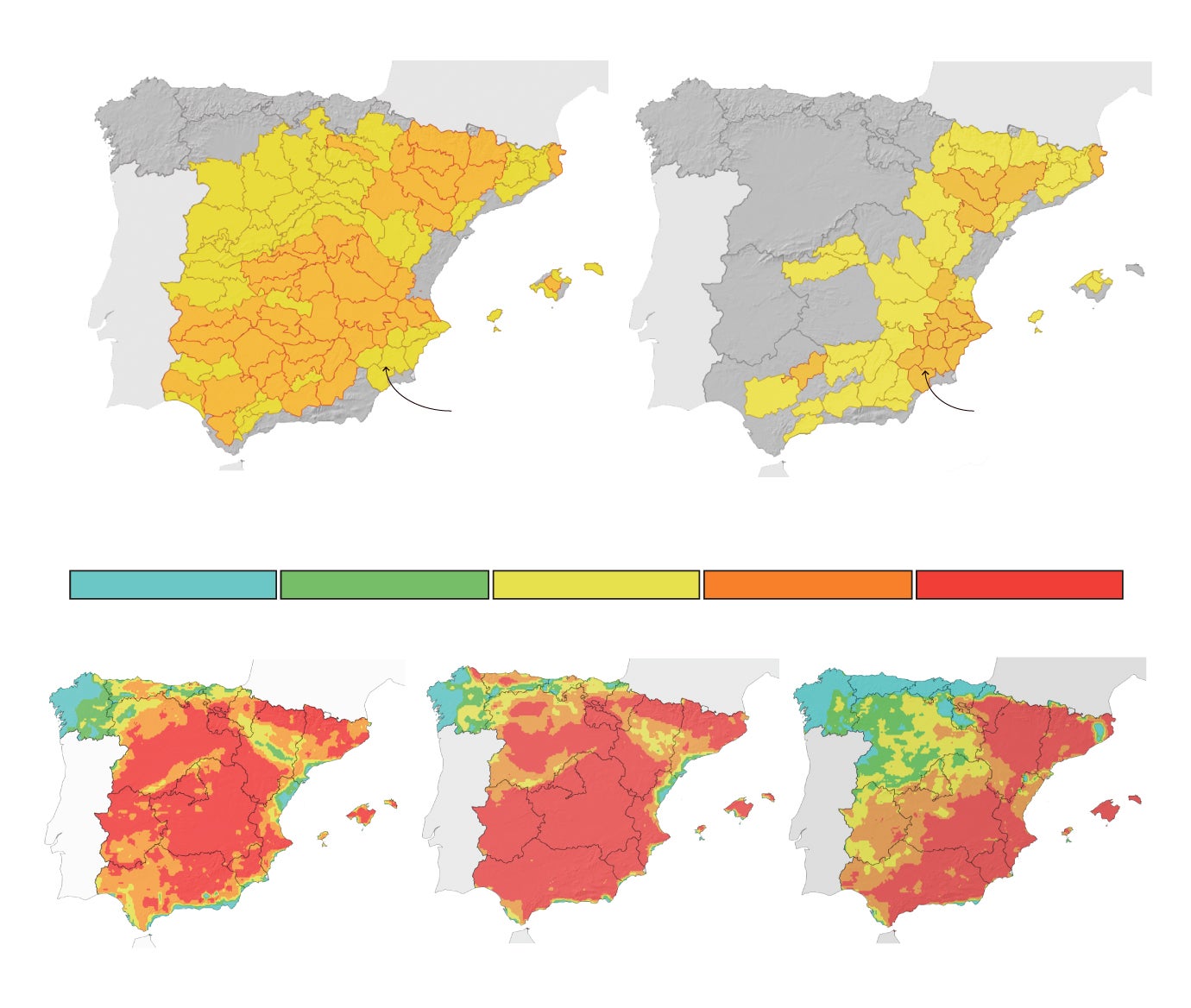 En el Noroeste habrá aviso amarillo el sábado por temperatura hasta 39 grados, mientras que el aviso naranja por temperaturas de hasta 42 grados estará activo en el Altiplano y Vega del Segura desde las 13 hasta las 21 horas con una probabilidad que oscila entre el 40 y el 70%. En concreto, en el Noroeste, el aviso naranja por 41 grados estará activo desde las 13 hasta las 21 horas con una probabilidad superior al 70%.