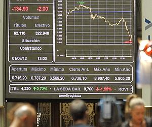 En realidad, no tiene por qué existir contradicción entre lo que afirmó hace una semana Mario Draghi, el presidente del Banco Central Europeo (BCE)-"haremos todo lo necesario"- y lo que ha expuesto tras la reunión mensual del BCE -"se llevarán a cabo medidas excepcionales, pero bajo una condicionalidad estricta"-. Las expectativas generadas por el mercado habían sido tan grandes, que sólo un anuncio impactante habría colmado la sed de los inversores. Y, por lo general, tras las reuniones del BCE se puede difundir de todo, menos concreción. La apuesta de los mercados iba enfocada hacia la compra directa de bonos. Y en cuanto Draghi omitió el tema, las ventas se propagaron por todos los parqués, en especial el español, que sucumbió un 5,16%, hasta los 6.373 puntos. A partir de ahora, y con las vistas puestas en las "próximas semanas" en las que el BCE estima articular algunas medidas, se prevé un mes de agosto tan o más volátil que el del año pasado. El Ibex-35 regresa al nivel de hace una semana y se expone a perder, de nuevo, el soporte de los 6.000 puntos, una referencia de hace nueve años.