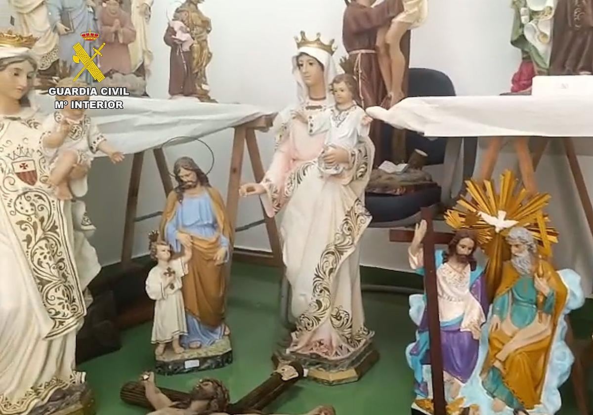 Se han recuperado más de medio centenar de imágenes sacras, valoradas en cerca de 100.000 euros de las que, gran parte, se encuentran depositadas en el Puesto de la Guardia Civil de Torreagüera a la espera de ser identificadas por sus legítimos propietarios.