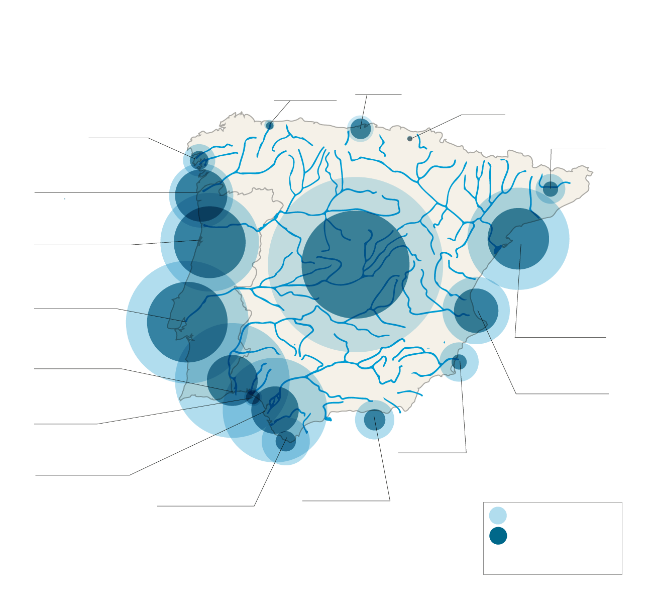 La ausencia de lluvias abundantes, incluso en la cabecera del Segura, ha mermado poco a poco las reservas de las dos presas más grandes. Ambas se encuentran al 10% de su capacidad total: el primero almacena 45 hm3 de 437 posibles, mientras que el segundo sólo 20 de 210 hectómetros. Las dos infraestructuras, ubicadas en la provincia de Albacete, rozan el 'embalse muerto', cuando el volumen del agua es tan bajo que la cota queda por debajo del nivel de las tomas y supone, además, un peligro para la supervivencia de los peces.