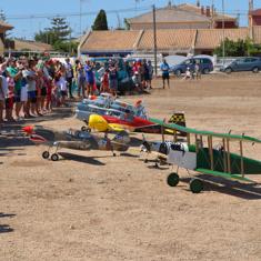 Vuelos sin motor remolcados por una avioneta, aviones clásicos, de instrucción y de pasajeros despegaban y aterrizaban junto al público que disfrutó de una exhibición que se realizó por primera vez en Santiago de la Ribera, en un solar de grandes dimensiones, acondicionado para la ocasión, y ubicado precisamente en la avenida Patrulla Águila.