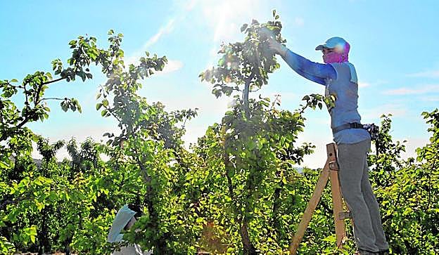 El presidente de Apoexpa, Joaquín Gómez, considera que pueden «haber problemas» para cubrir la mano de obra que necesitan en los 24 almacenes de fruta de hueso y uva de mesa que operan en la Región. «Para el clareo de los árboles no tenemos gran dificultad, los inconvenientes pueden estar en los centros de manipulación y envasado a la hora de establecer turnos y aplicar las medidas de prevención y separación entre personas. Puede repercutir en el ritmo de producción. Con las máquinas calibradoras no hay problema, pero sí con las de empaquetado, donde la distancia entre los empleados es menor. En el campo no hay estos inconvenientes porque cada trabajador recolecta solo en un árbol».