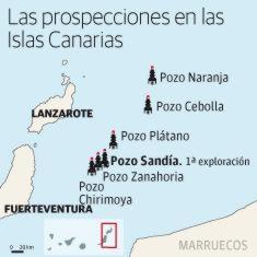 En caso de que en los trabajos se encuentre petróleo, el 'Rowan Reinasse' se desplazaría a primeros de año a la zona denominada Chirimoya, la ubicada más al sur del lecho marino objeto del estudio inicial. Allí volverá a clavar su sonda. De esta manera, las prospecciones irán acotando el tamaño del depósito o de otras bolsas en el resto de puntos determinados para la búsqueda, tales como Zanahoria, Plátano o Cebolla, que es la ubicada más al norte, prácticamente a la altura de la ciudad de Arrecife, en Lanzarote.