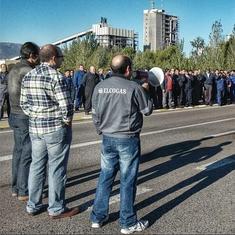 Concentración de los trabajadores de la termoeléctrica de Elcogás en Puertollano.