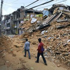Dos nepalíes caminan entre las ruinas ocasionadas por el terremoto que sacudió el país en mayo.