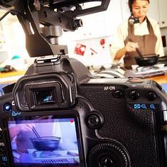 Taka Sasaki durante la grabación de una receta para su canal de Youtube.