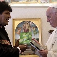 Morales, que defiende la despenalización de la hoja de coca cuyo uso forma parte de las tradiciones de los indígenas andinos, le regaló al papa tres libros sobre los beneficios de la coca, además de recomendarle tomarla.