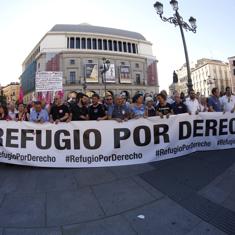 'Refugio por derecho' ha sido el lema que ha presidido la marcha, convocada por una veintena de organizaciones sociales, partidos y sindicatos, que ha discurrido desde la plaza de la Ópera hasta la Puerta del Sol.