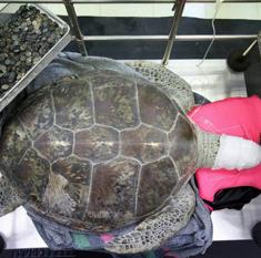 Extraen 915 monedas del estómago de una tortuga en Tailandia