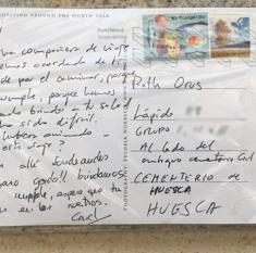La postal enviada al cementerio de Huesca.