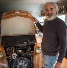 Con la barba amarillenta por el cigarrillo, Michel Robillard sacude con la mano viruta de madera de su suéter de lana. Sus ojos azules se iluminan cuando acaricia la madera delicadamente lijada de sus maquetas. A los 14 años, con su diploma de ebanista en el bolsillo, Robillard comenzó haciendo maquetas hasta pasarse a modelos de tamaño real con un sueño en mente: construir un vehículo de madera a escala 1 con el que pudiera salir a pasear este verano.