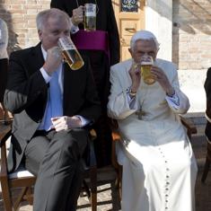 El papa emérito Benedicto XVI bebiendo cerveza.