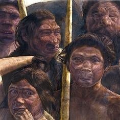 Recreación artística de los homínidos de Atapuerca.