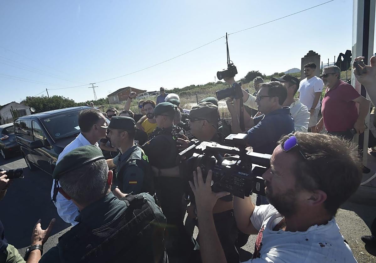 La Guardia Civil cortó los dos accesos al carril donde se ubican las instalaciones, lo que no evitó que se produjera un encontronazo entre un grupo liderado por Víctor Egío, de Podemos, y los representantes del partido de Abascal frente a los agentes