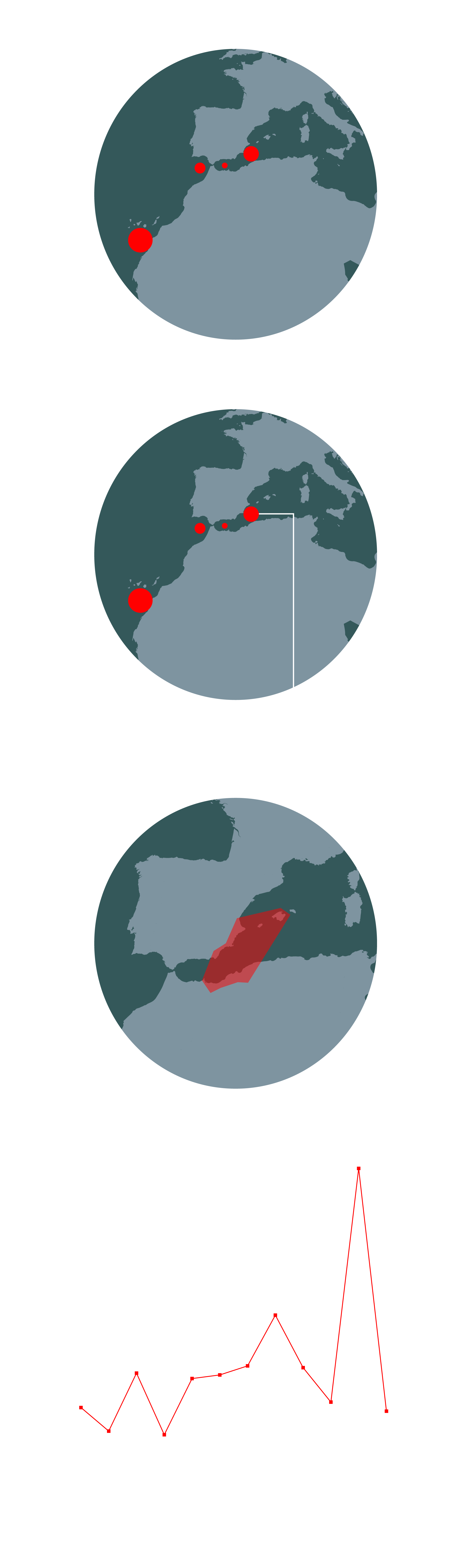 «Si hay muchas muertes, muchas desapariciones, es porque son embarcaciones muy precarias», explica Ángeles Colsa, fundadora de la ONG Cipimd. «La inmensa mayoría son de fibra, de entre 5 y 8 metros de eslora, y tienen motores de 40 a 85 caballos». Por eso, buscan los trayectos más cortos. «Las que van para Almería suelen salir desde Orán –apunta–; las que van hacia la costa de la Región de Murcia parten de Mostaganem».