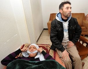 Preferiría no recordar, pero la hospitalidad musulmana supera sus ganas de callarse. «Yo estaba en casa. Llamaron a la puerta. Salí y ya habían abierto. Me pusieron una luz en los ojos y entonces me cogieron entre los tres. Me colocaron esposas y me pusieron una cuerda en los pies. Con mi pañuelo me taparon los ojos y la boca. Me pusieron fuego en los brazos y me hicieron cortes en los brazos y enlas piernas. También me echaron lejía, barro y arena por la cabeza. Yo no podía gritar para pedir ayuda porque tenía la boca tapada. Así me dejaron muchas horas», comenta Fátima ayudada por su esposo que hace las veces de traductor.