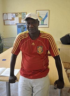 Que lleve una camiseta de la selección española ya deja entrever los objetivos de Bouba Obama (Senegal, 1965). Lo que más desea es la nacionalización y conseguir traerse a su familia a España. Llegó hace cinco años a Cartagena y, como cualquier inmigrante, esperaba que mejoraran sus condiciones de vida. Durante un par de años así fue. Logró buenos empleos en el campo y en la construcción, consigió un piso y lo que ahorraba lo gastaba para poder llamar a casa. Pero su situación cambió al estallar la crisis económica. Se quedó en paro y así lleva ya tres años. Duerme en la calle, come de lo que le dan y, a diario, acude a la sede de ACCEM, una asociación que trabaja con refugiados e inmigrantes. Este mes se le plantea otro reto, cómo pasar el ramadán sin desfallecer en el intento.