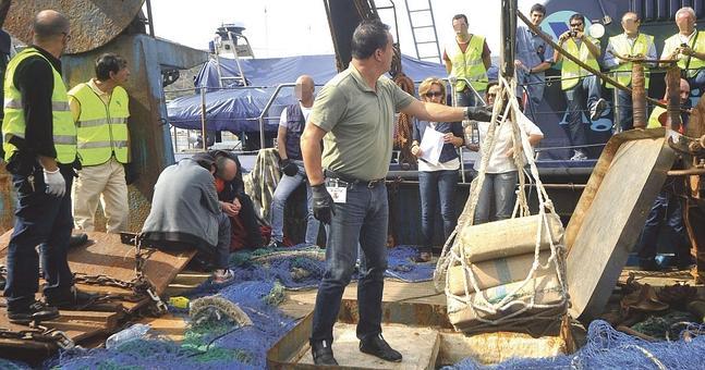 El patrullero 'Abanto' salió en busca del pesquero hasta alcanzarlo por la tarde en alta mar. En una primera inspección, los agentes de Aduanas descubrieron unos 300 fardos de resina de hachís en las bodegas del barco, que a falta del pesaje oficial podrían ser unas 9 toneladas de droga valorada en unos 15 millones de euros. El pesquero, sus seis tripulantes y el hachís fueron llevados al Arsenal Militar de Cartagena para su puesta a disposición del juez de guardia.