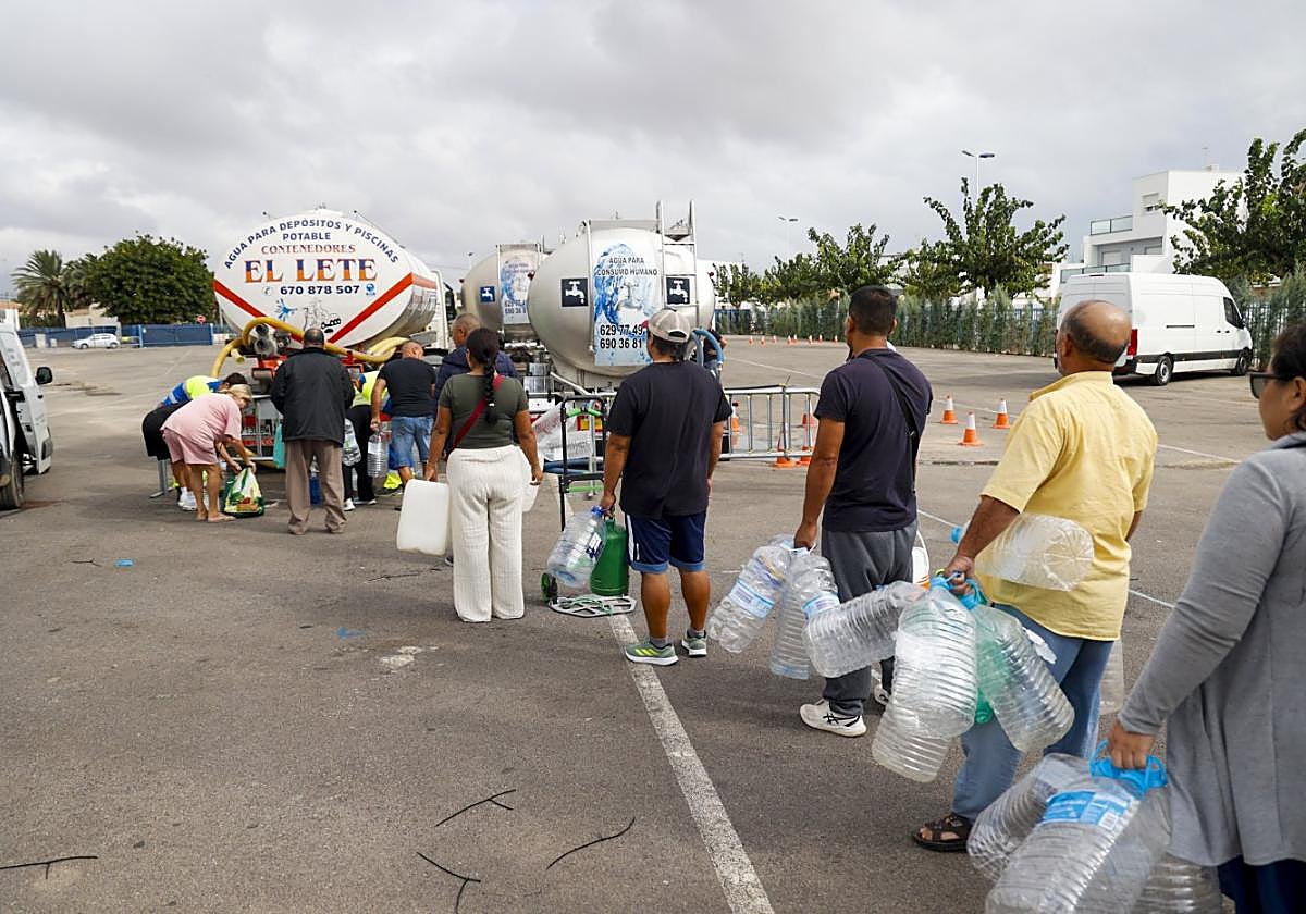 Miles de personas hacen cola frente a las cubas entre calles llenas de barro, y el Taibilla trabaja a destajo para restablecer el servicio tras la dana 'Alice'