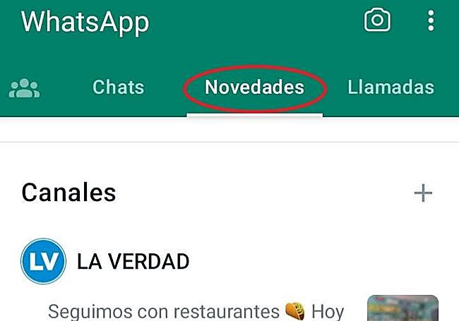 4. Podrás encontrar el canal en la pestaña 'Novedades', junto a los estados de tus contactos.