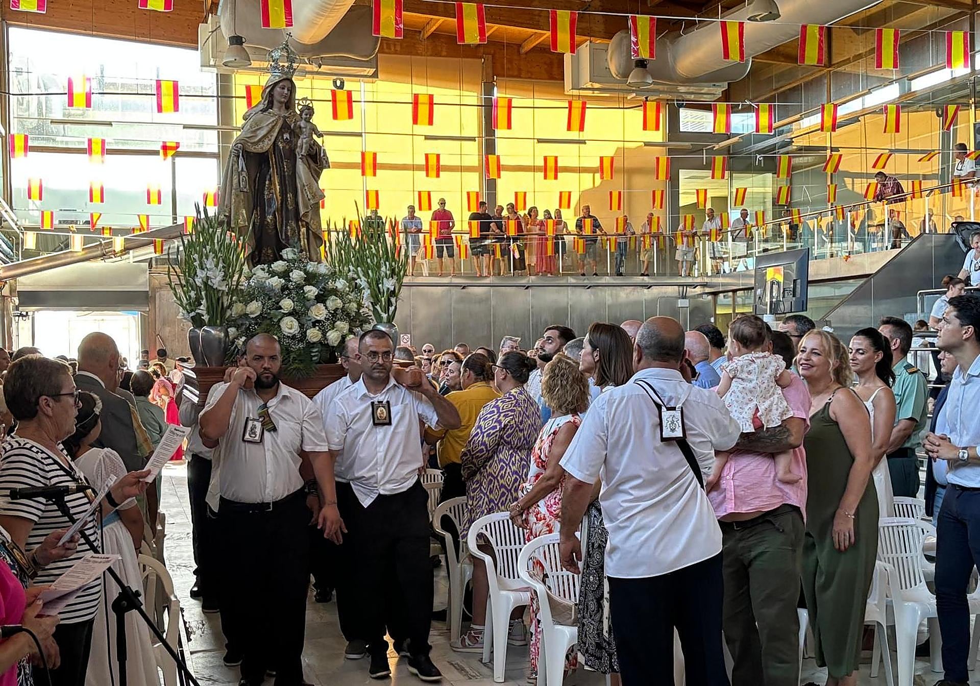 n Mazarrón la jornada comenzó temprano con la misa que se celebró en honor de la Virgen del Carmen en la iglesia de San José, ubicada en el puerto. A la conclusión de la eucaristía llegó el turno para el tradicional traslado de la imagen mariana hasta la lonja de pescadores, donde la imagen recibió una ofrenda floral promovida por Cáritas. El acto tuvo lugar al lado de la Cofradía de Pescadores, en el paseo marítimo del municipio. La actividad durante la tarde también fue intensa. En la longa se celebró una misa que sirvió de antesala a la procesión marítima. Una vez en tierra la imagen de la Virgen protagonizó otro cortejo, en este caso terrestre. Los pescadores acompañaron a su patrona desde la longa hasta su vuelta a la iglesia de San José.
