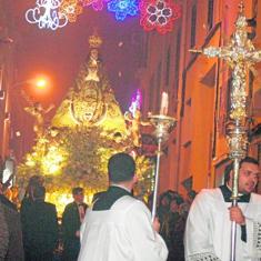 El olor a pólvora de la procesión es tan tradicional como el recorrido, que fue establecido hace casi dos siglos. De hecho, se mantienen detalles como la parada de la carroza en todos los cruces de las calles o en el que fuera domicilio de un sacerdote, así como el juego de la Bandera en la llamada Horma del Niño.