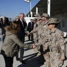 Santamaría y Morenés saludando a los militares españoles en Herat.
