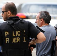 Vizan González (d) es escoltado por un miembro de la Policía Federal de Brasil.