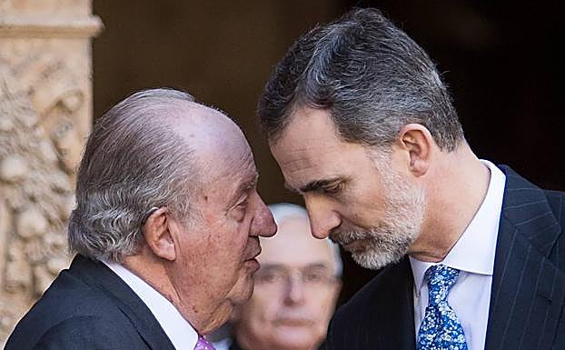 Don Juan Carlos y don Felipe, en abril de 2018, en Palma de Mallorca. Afp