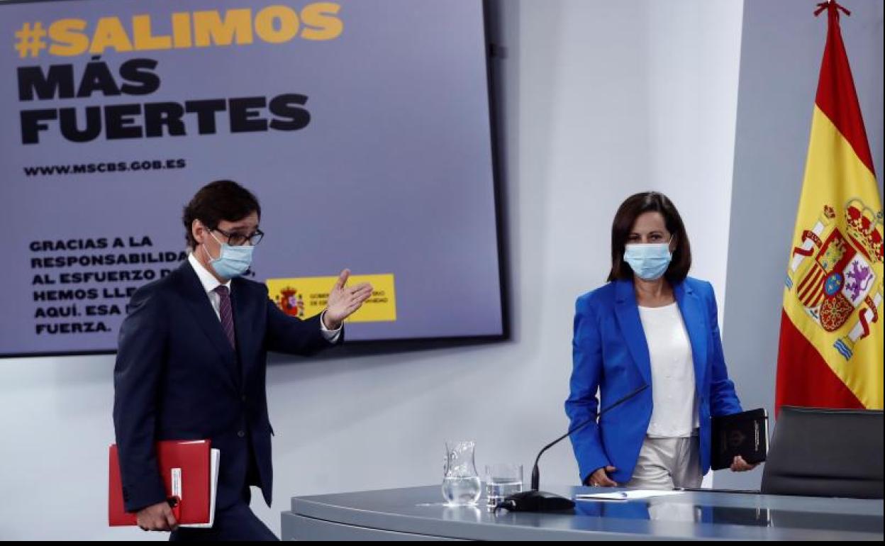 La ministra Margarita Robles ha recordado hoy en rueda de prensa junto a su colega Illa que el objetivo es la «colaboración institucional» sin «ninguna otra valoración». «No valoramos si se ha hecho bien, mal o regular, sino que queremos poner los medios para la lucha contra el virus», ha resumido.