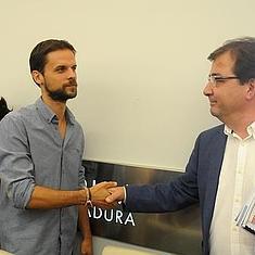 Imagen de la reunión del PSOE extremeño y Podemos de Extremadura en la sede de la Asamblea de Extremadura.