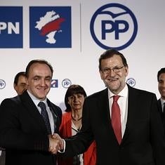 España necesita "un Gobierno serio y con las ideas claras", había dicho Rajoy en Pamplona, donde ha subrayado que "no son tiempos para amateurs, para venir al Gobierno a aprender". En una comparecencia pública en la que no se han aceptado preguntas, el presidente del Gobierno se ha comprometido "de manera nítida y clara" a respetar el régimen foral de Navarra y a mantener el Convenio Económico como "instrumento adecuado para asegurar las libertades, la estabilidad, la cohesión y el desarrollo del pueblo navarro". Rajoy, que ha suscrito el acuerdo con el presidente de UPN, Javier Esparza, ha mostrado su apoyo al Amejoramiento del Fuero y ha expresado el compromiso del PP a eliminar la Disposición Transitoria Cuarta de la Constitución, que regula el procedimiento de anexión de Navarra a Euskadi en una eventual reforma de la Carta Magna.