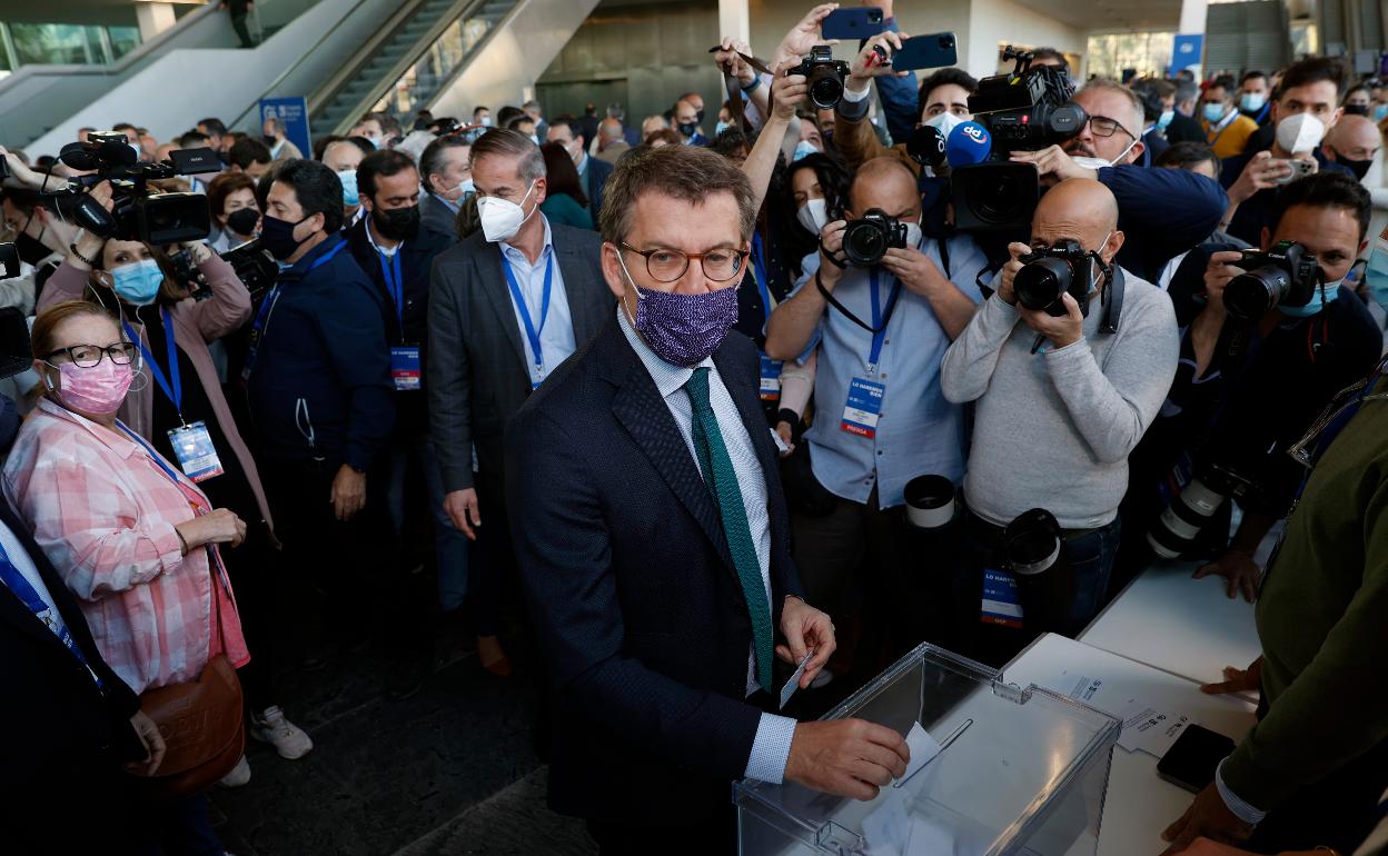 No había margen de error. El PP le entregó ayer todo el poder a Alberto Núñez Feijóo con el 98,35% de los votos, con todas las fuerzas territoriales de su lado y flanqueado por Mariano Rajoy y Pablo Casado. Si el dirigente gallego se dirigía la víspera a los suyos como un candidato «sereno, moderado y con experiencia», ayer lo hizo con los máximos galones para sentar los cimientos del proyecto político que ahora pasa a liderar. Feijóo se puso el traje de presidenciable, convencido de que «el cambio» de Gobierno se ha iniciado, para prometer «un rumbo claro» frente a Pedro Sánchez sin dejar de tenderle la mano en pactos de Estado y marcando distancias con Vox. «Guarden sus carnés de patriotas y empecemos a trabajar como adultos», esgrimió ante los cerca de 3.000 militantes que abarrotaron el auditorio del palacio de congresos de Sevilla.