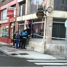 Los bomberos, ayudados por la Policía Local, tratan de acceder al bar.