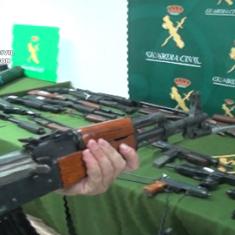 • 1.- Armas de fuego Tres fusiles de asalto AK-47, cinco subfusiles, diez escopetas, siete pistolas, diez revólveres, seis rifles y carabinas, un lanzagranadas de 40 mm. de fabricación artesanal, catorce pistolas detonadoras (seis de ellas ya transformadas para efectuar fuego real), cuatro armas de avancarga, dos ballestas, 38 cañones semielaborados, con los que rehabilitar armas inutilizadas, un silenciador y una pistola eléctrica.