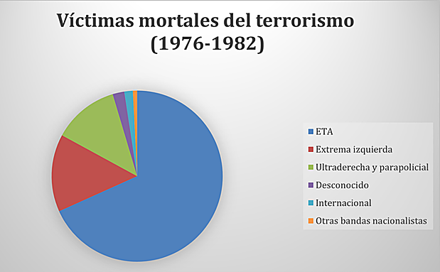 Entre 1976 y 1982 España sufrió un alto nivel de violencia política. Tuvo varias causas, siendo la principal la actividad de las organizaciones terroristas. Como se indica en una reciente obra que he coordinado con María Jiménez, desde 1976 a 1982 (ambos incluidos) los atentados acabaron con la vida de 498 personas y dejaron 450 heridos.