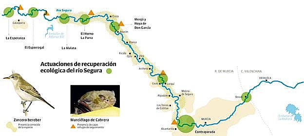 El educador ambiental del proyecto, Pedro López, explica que se trabajará «en la recuperación de los valores ambientales del río» con actuaciones como repoblaciones forestales, la mejora del hábitat para murciélagos y el anillamiento de zarceros pálidos occidentales, como también se conoce al 'Iduna opaca'. Alumnos de cada uno de los (al menos diez) colegios de la zona a los que se va implicar recibirán una charla de formación, para posteriormente actuar como «custodios de ciertas zonas de tramos de ribera próximos a los municipios». Ellos se encargarán de vigilar las actuaciones del proyecto y se preocuparán de la evolución de las plantaciones (una nueva hectárea de bosques de ribera y el refuerzo de otras diez recientemente creadas) y de los refugios para murciélagos, por ejemplo.