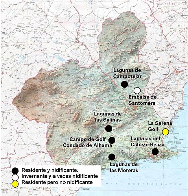El año pasado, la Consejería de Medio Ambiente registró en total 16 parejas nidificantes de malvasía en toda la Región de Murcia
