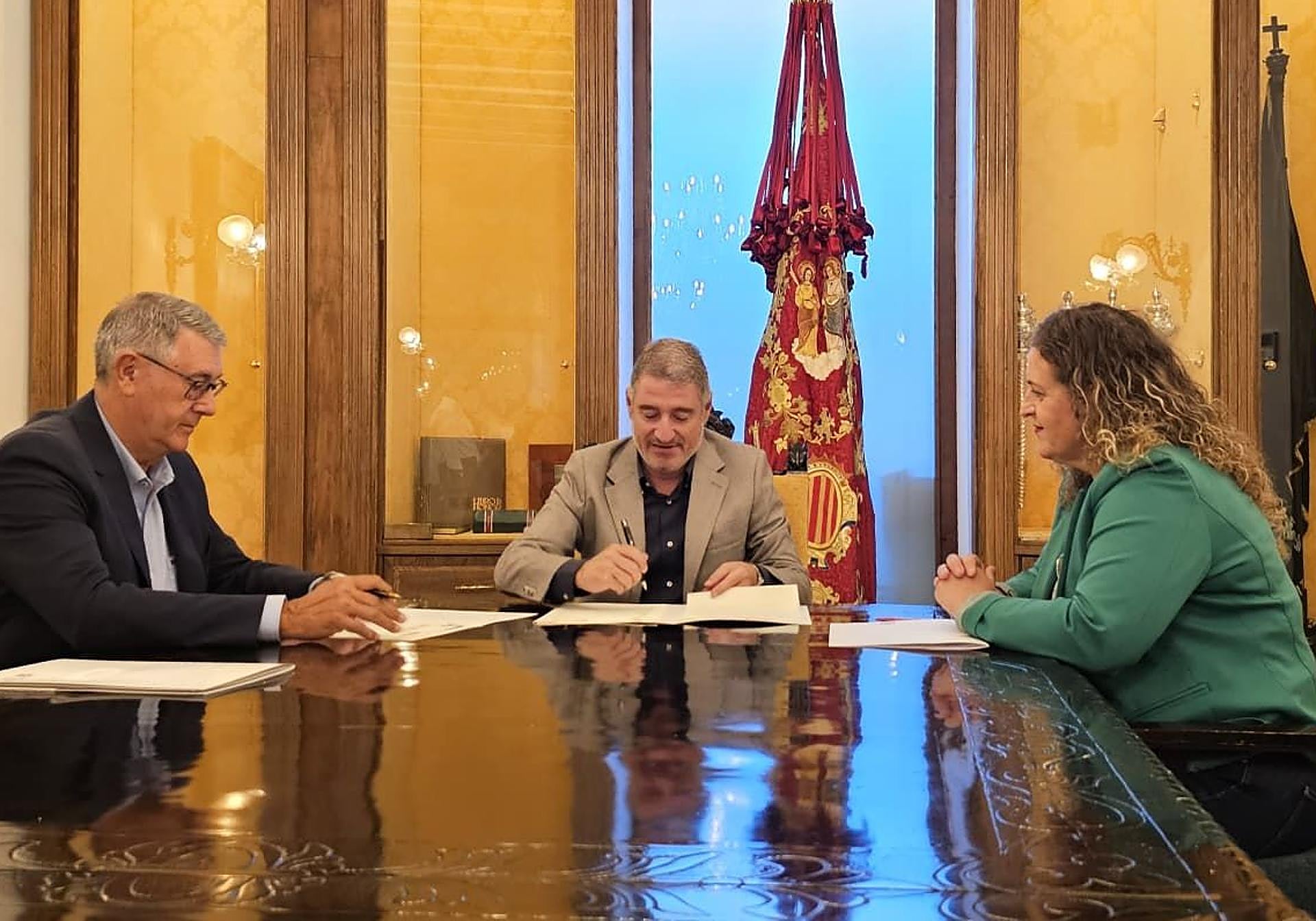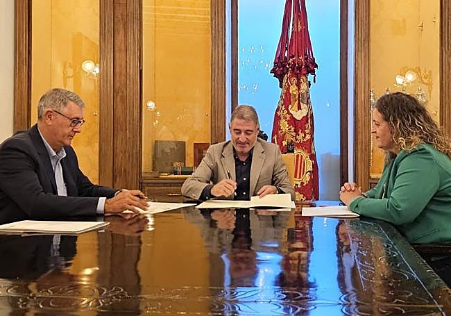 En esa misma sala del Oriol donde se ha firmado el convenio, representantes de la CHS y del Ayuntamiento de Orihuela han abordado la cesión, por parte del organismo de cuenca a la administración local, de la conocida como «carretera de los tubos».